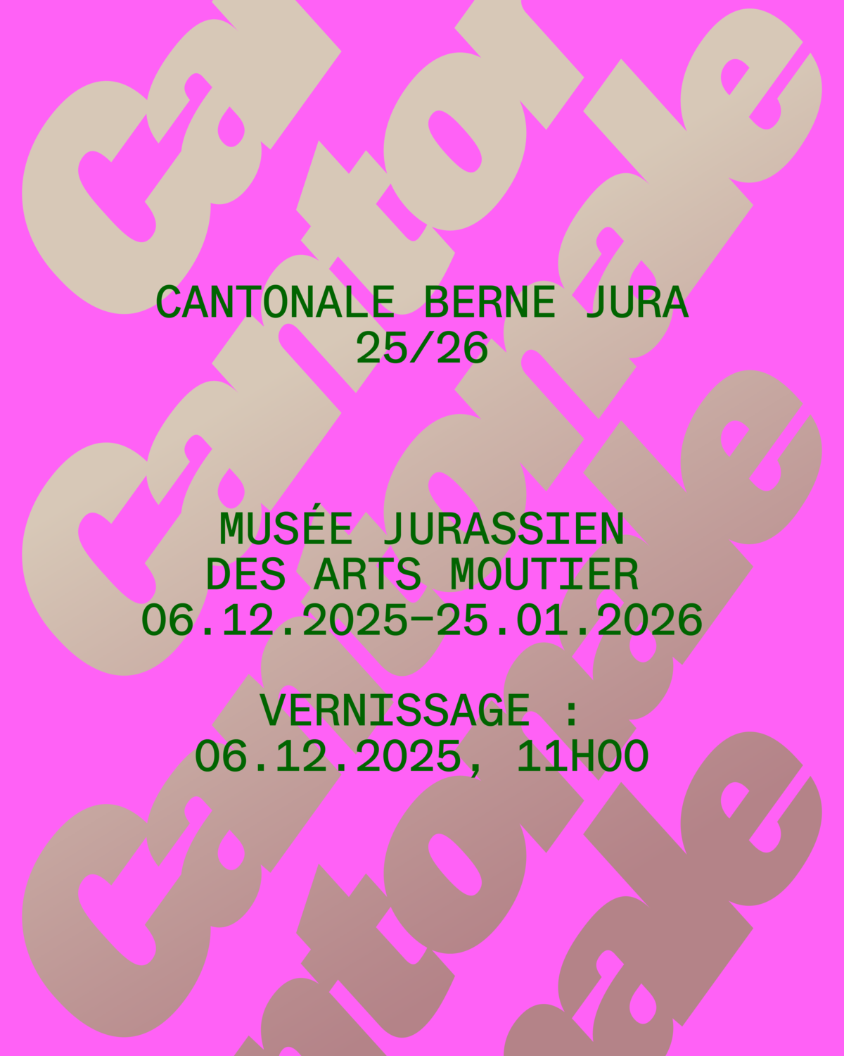 À partir de décembre 2025, la Cantonale Berne Jura présentera, cette année encore, un aperçu de la création en arts visuels, dans onze différents espaces d’art et musées sur l’ensemble des deux cantons de Berne et du Jura.